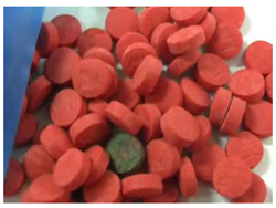 2 ยาบ้าชนิดเม็ดสีส้มซึ่งขายกันเกลื่อนกลาดในพื้นที่