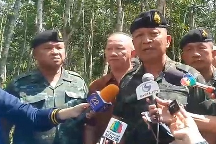 บรรยายภาพ : พล.ท.พรศักดิ์ พูลสวัสดิ์ แม่ทัพภาคที่ 4 ให้สัมภาษณ์ขณะลงพื้นที่ตรวจจุดเกิดเหตุโจมตีป้อม ชรบ.