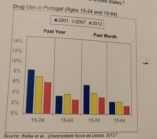 ผู้อำนวยการ TIJ กล่าวอีกว่า โปรตุเกสก่อนหน้านั้นมีปัญหาผู้เสพยาเสพติดระดับต้นๆ ในยุโรป และมีปัญหาคนเสียชีวิตสูง ติดเชื้อ HIV จนปี 2001 มีนโยบายแก้ปัญหายาเสพติด โดยการไม่เอาโทษทางอาญามาใช้ (Decriminalisation) สำหรับผู้เสพ และโปรตุเกสไม่ได้ทำให้ยาเสพติด (เฮโรอีน) เป็นเรื่องถูกกฎหมาย ยังเป็นเรื่องผิดกฎหมายอยู่ เพียงแต่ไม่นำโทษทางอาญามาใช้ เน้นมาตรการทางปกครอง ทางสาธารณสุขเป็นหลัก รวมถึงมีการตั้งคณะกรรมการยับยั้งการใช้ยาเสพติดโดยมิชอบ ประกอบด้วย คณะกรรมการ 3 คน ด้านการแพทย์ หรือสาธารณสุข ด้านบริการสังคม เช่น นักจิตวิทยา หรือสังคมสงเคราะห์