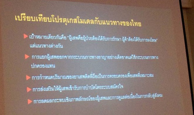 โปรตุเกสโมเดล ยาเสพติดยังคงเป็นสิ่งผิดกฎหมายอยู่ ดร.กิตติพงษ์ กิตยารักษ์ เสนอไทยให้ใช้วิธีที่เหมาะสมกับผู้เสพ ทำอย่างไรแยกผู้เสพออกจากผู้ค้าให้ได้อย่างจริงๆ เพื่อไม่ให้กระบวนการยุติธรรมเป็นอัมพาต หามาตรการบำบัดที่มีประสิทธิภาพ และกลับสู่สังคมได้