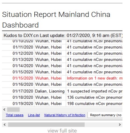 ขณะที่ กระทรวงสาธารณสุขของไทย เกาะติดสถานการณ์โรคปอดอักเสบ อู่ฮั่น มณฑลหูเป่ย์ ประเทศจีน เช่นกัน มีการแจ้งเตือนระดับ 3 หลีกเลี่ยงการเดินทางไปเมืองอู่ฮั่น พร้อมกับแสดงแผนที่โลกบอกข้อมูลแบบเรียลไทม์ เห็นได้ชัดว่า ตัวเลข ณ วันที่ 25 มกราคม 2563 สาธารณรัฐประชาชนจีน มีจำนวนผู้ป่วยโรคปอดอักเสบจากเชื้อไวรัส กระจายเกือบทุกเมือง !!