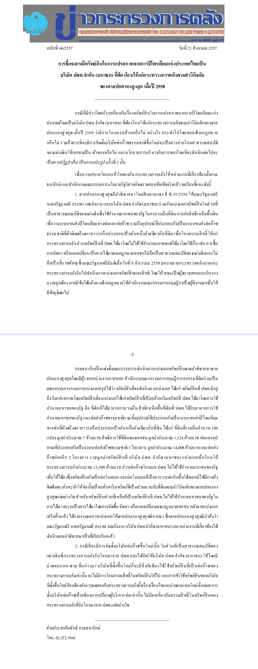 กรมธนารักษ์ ชี้แจงกรณีทรัพย์สินแปรสภาพจาก ปตท.ที่ต้องโอนให้แก่ก.คลัง