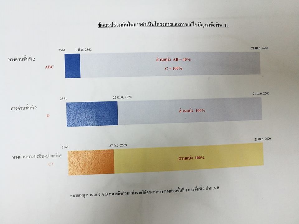 -ทางด่วนขั้นที่ 2 (ABC) หมดสัญญาสัมปทานวันที่ 1 มีนาคม 2563 ขยายถึง 21 เมษายน 2600 หรือ 37 ปี (ทางด่วนในเมือง แบ่งรายได้จากค่าผ่านทาง (กทพ.60% บีอีเอ็ม 40%)