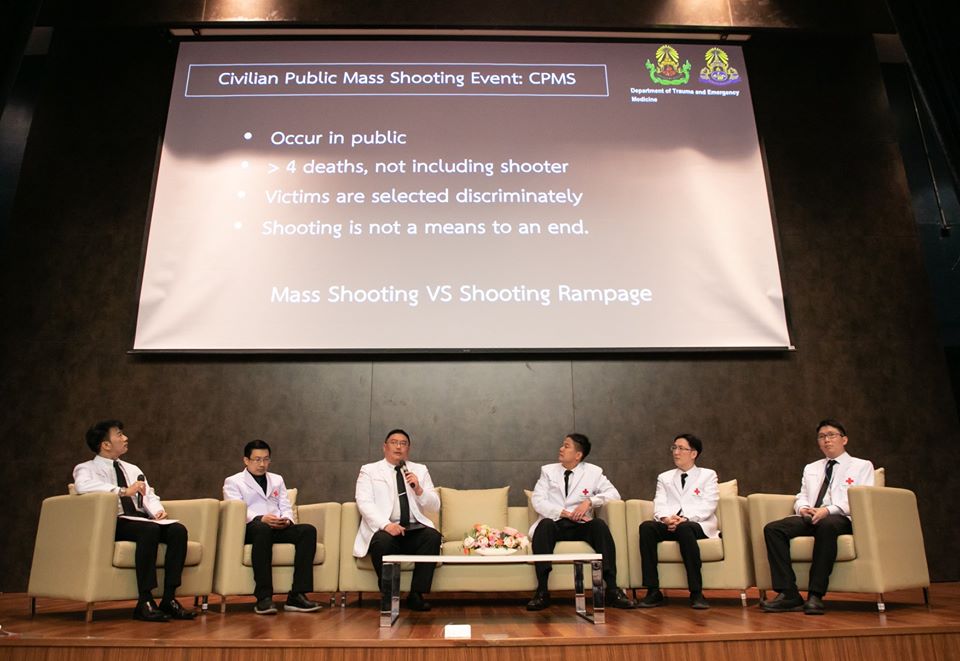 “Escape and Survive in Mass Shooting” คือหัวข้อของเวทีแรกๆ ที่จัดขึ้นโดยโรงพยาบาลจุฬาลงกรณ์ สภากาชาดไทย และคณะแพทยศาสตร์ จุฬาลงกรณ์มหาวิทยาลัย เพื่อถอดบทเรียนร่วมกันของสังคมไทย หลังจากเกิดการณ์สะเทือนขวัญครั้งยิ่งใหญ่ของคนไทยทั้งชาติ ที่ จ.นครราชสีมา เมื่อวันเสาร์ที่ 8 กุมภาพันธ์ ต่อเนื่องถึงวันที่ 9 กุมภาพันธ์ที่ผ่านมา