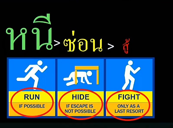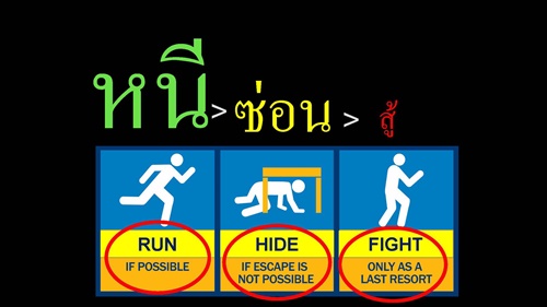 และนี่คือแนวคิด Run / Hide / Fight ที่ได้จากข้อสรุป The Hartford Consensus