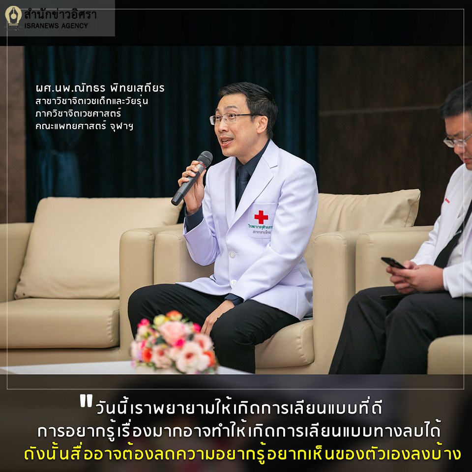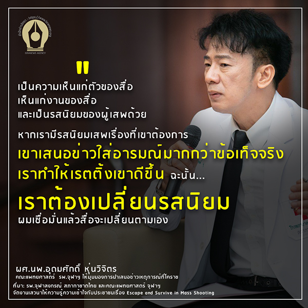 "เหตุการณ์ที่โคราชมีคนที่น่าพูดถึงอีกเยอะ เช่น เหยื่อ หรือความกล้าหาญผู้เข้าไปคลี่คลายสถานการณ์ ซึ่งน่าจะได้รับการพูดถึงมากกว่า และถือเป็นต้นแบบที่ดี วันนี้เราพยายามให้เกิดการเลียนแบบที่ดี การอยากรู้เรื่องมากอาจทำให้เกิดการเลียนแบบทางลบได้ ดังนั้นสื่ออาจต้องลดความอยากรู้อยากเห็นของตัวเองลงบ้าง" ผศ.นพ.ณัทธร ให้ความคิดเห็น ก่อนปิดเวที