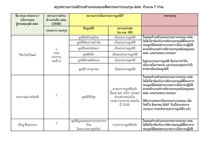 - เปิดสถานะการดำรงตำแหน่ง 7 อดีตบอร์ด สสส.