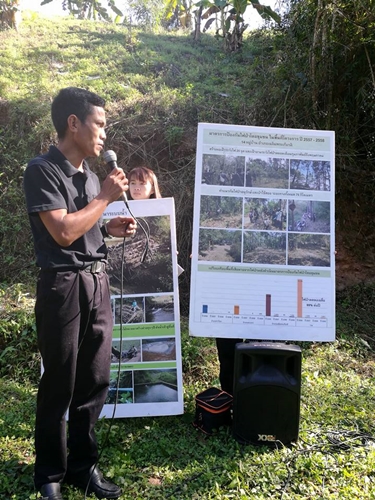 “พื้นที่ตรงนี้ไม่มีการเผา ชาวบ้านแต่ก่อนปลูกพืชเชิงเดี่ยว มีแต่ควันไฟเผาอย่างเดียว แต่เมื่อปลูกพืชเศรษฐกิจแซมสามารถลดการเผาลงได้ จากปี 2552 โครงการปิดทองหลังพระฯ เข้ามาช่วยเรื่องระบบน้ำ ผลสัมฤทธิ์การเพิ่มพื้นที่ป่า เห็นชัดเจนระหว่างปี 2556-2558 สามารถเพิ่มพื้นที่ป่าได้แล้วกว่า 4 พันไร่”