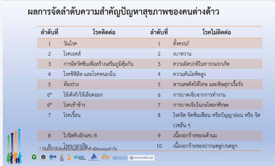 ขณะที่นพ.นพพร ชื่นกลิ่น ผู้อำนวยการสถาบันวิจัยระบบสาธารณสุข (สวรส.) กล่าวว่า แม้ประเทศไทยจะมีมาตรการความร่วมมือระหว่างและภายในประเทศ โดยหน่วยงานหลายภาคส่วน แต่ความท้าทายของการพัฒนาการเข้าถึงบริการสุขภาพโดยขจัดอุปสรรคในการเข้ารับบริการทางสุขภาพที่เกี่ยวข้องอย่างเป็นระบบ จึงเป็นประเด็นท้าทายใหม่ในอนาคต ไม่ว่าจะเป็นการระบาดของโรคติดต่อที่เคยป้องกันได้และกลับมาอุบัติใหม่ ตลอดจนโรคติดต่อสำคัญ ระบบการจัดการและเชื่อมต่อบริการระหว่างประเทศ ระบบสารสนเทศสุขภาพแรงงานต่างด้าว เด็กข้ามชาติที่มีหลากหลายกลุ่มหลายสถานะ ขณะที่กลไกอภิบาลระบบและนโยบายเกี่ยวข้องกับหลายหน่วยงานยังขาดเจ้าภาพหลัก กลุ่มประชากรชาวเขา/ชายแดนหรือราษฏรบนพื้นที่สูงไม่มีสัญชาติไทย เป็นอุปสรรคสำคัญในการเข้าถึงสิทธิต่างๆ รวมทั้งยังต้องพัฒนาวิธีการสากลเพื่อให้บริการด้านสุขภาพในกลุ่มประชากรข้ามชาติมีประสิทธิภาพและมีความยั่งยืนสำหรับประเทศไทย