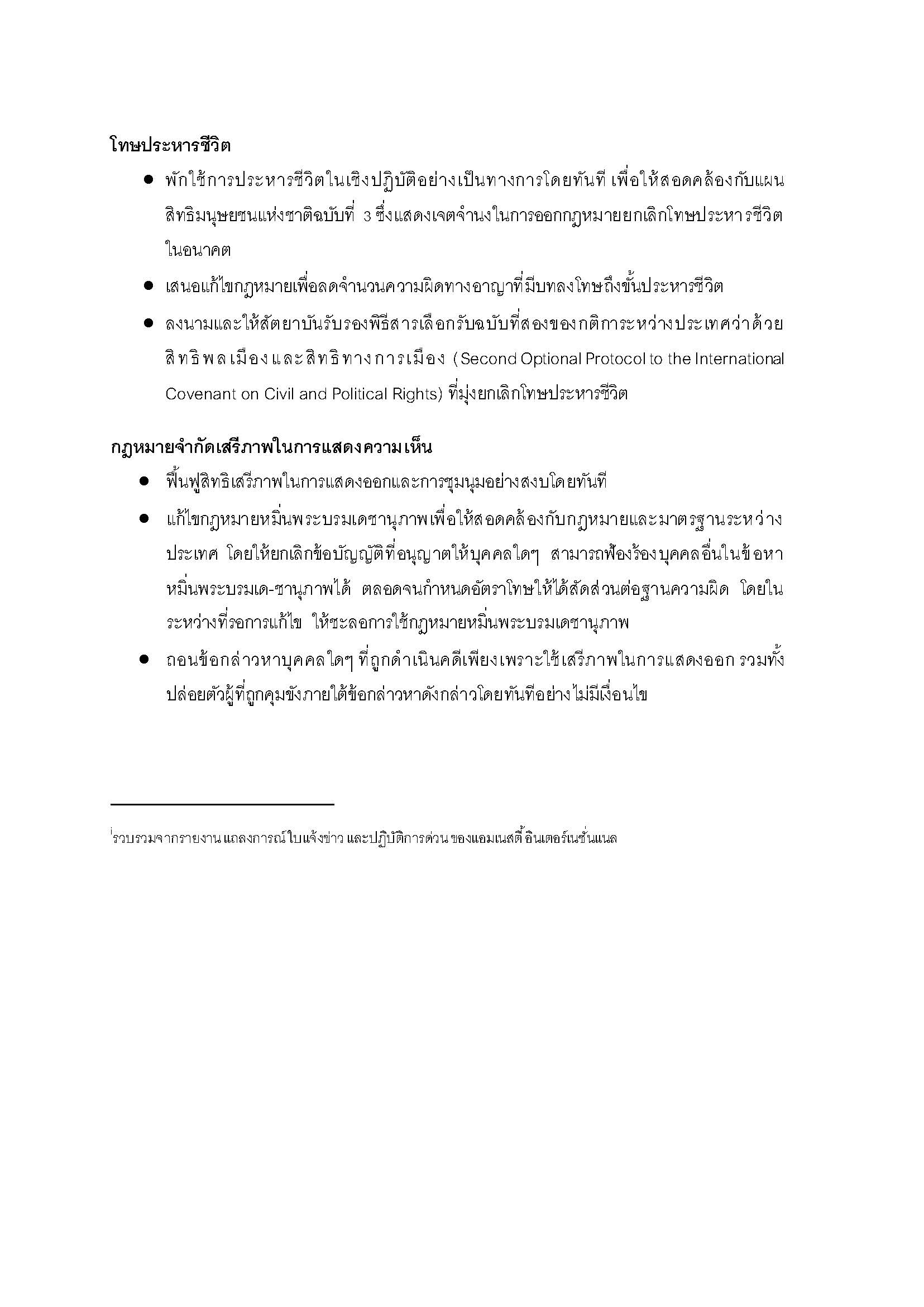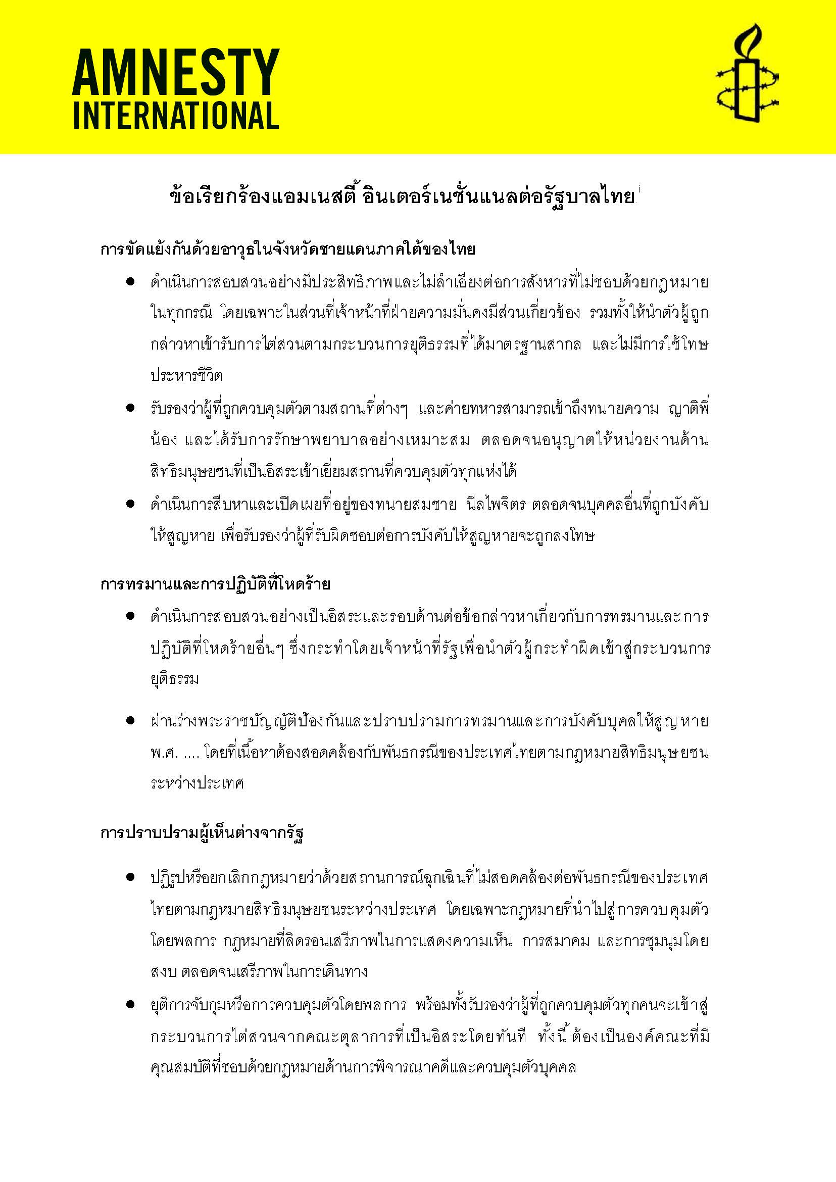 ข้อเรียกร้องเเอมเนสตี้ อินเตอร์เนชั่นเเนล ต่อรัฐบาลไทย