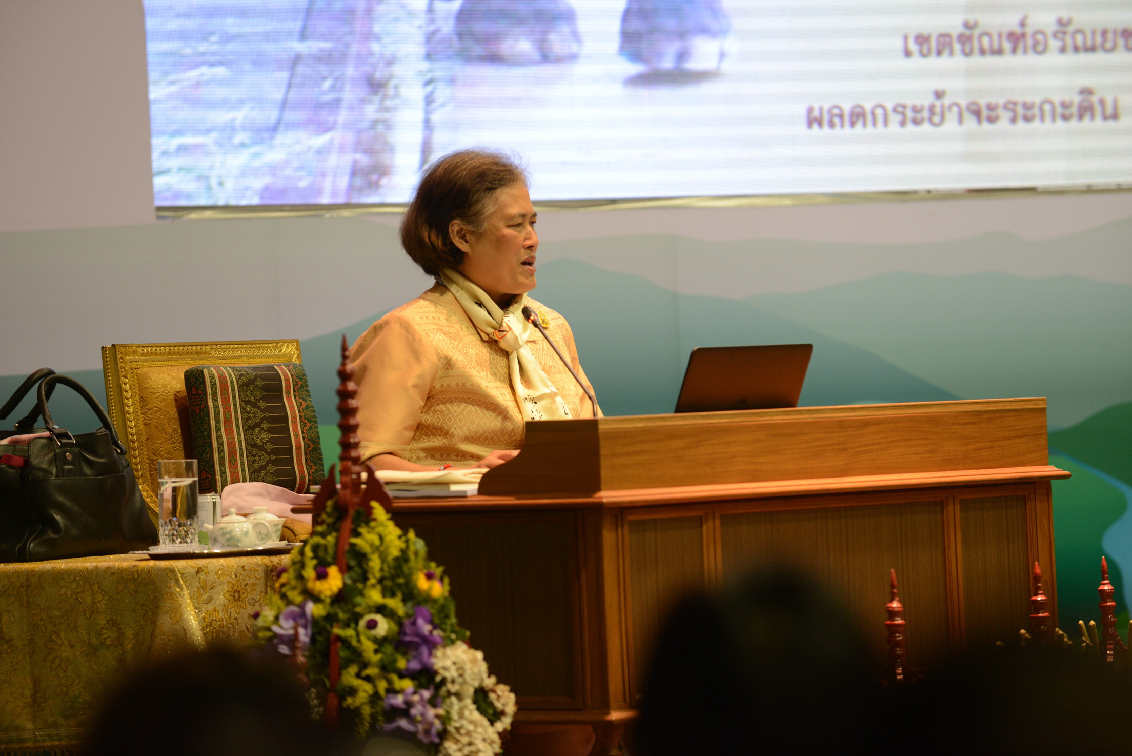 ในการนี้สมเด็จพระเทพฯ ทรงบรรยาย เรื่อง ‘การจัดการอนุรักษ์ทรัพยากรธรรมชาติป่าไม้’ ใจความตอนหนึ่งว่า ในสมัยโบราณการอนุรักษ์ป่าไม่ได้เป็นเรื่องสำคัญอย่างยิ่งยวดเหมือนในปัจจุบัน เพราะสมัยก่อนมีป่าไม้จำนวนมาก ประชากรน้อย การเดินทางเข้าป่าเป็นอันตราย มีสัตว์ร้ายต่าง ๆ ซึ่งพระวิภาคภูวดล (James Fitzroy Mccarthy) ในฐานะผู้เข้ามาสำรวจบุกเบิกพื้นที่ในไทย เพื่อทำแผนที่และได้รับตำแหน่งเป็นเจ้ากรมแผนที่คนแรก เคยบันทึกไว้ว่า กำลังตั้งแคมป์อยู่ ตื่นเช้าขึ้นมาลูกหาบถูกเสือคาบไปแล้ว