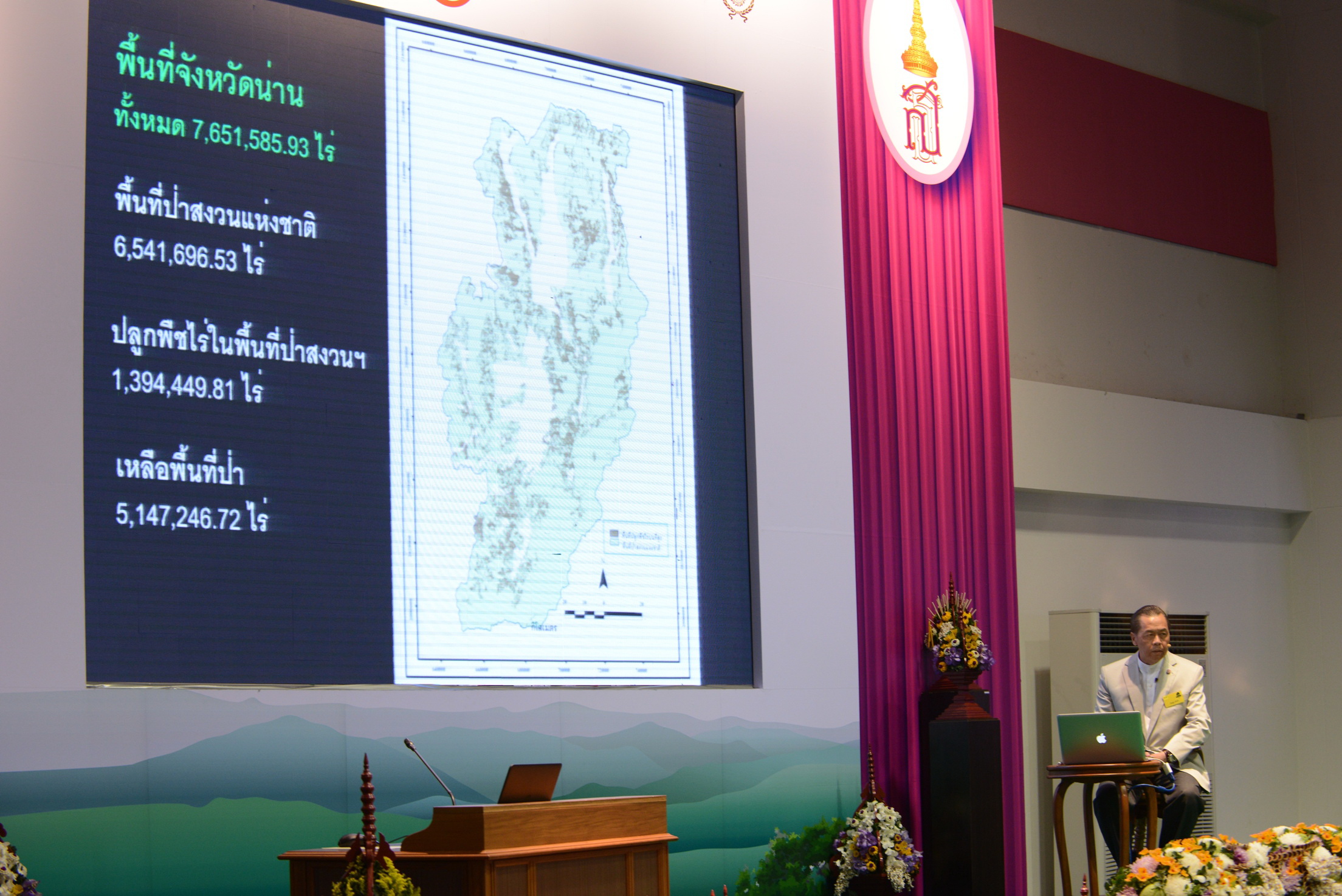 จากนั้นในเวทีมีการบรรยายเรื่อง ‘รู้รักษ์ป่า รู้รักษ์น้ำ’ โดยนายบัณฑูร ล่ำซำ กล่าวตอนหนึ่งว่า การบุกรุกป่า จ.น่าน ช่วงที่ผ่านมาที่มีการเก็บสถิติ ป่าหายไปปีละ 5 หมื่นไร่ เวลาผ่านไป 5 ปีหลังสุด กลับพบอัตราการสูญเสียพื้นที่ป่าเร็วขึ้นปีละ 1.5 แสนไร่ ซึ่งล่าสุดยังไม่แน่ใจกับสถานการณ์ดังกล่าว เพราะเกิดข้อจำกัดด้านเครื่องมือ ข้อมูลที่ได้จากดาวเทียม และงบประมาณ อย่างไรก็ตาม มีแนวโน้มชัดเจนป่าสูญเสียมากขึ้นเรื่อย ๆ ด้วยเเนวโน้มทางเศรษฐกิจ